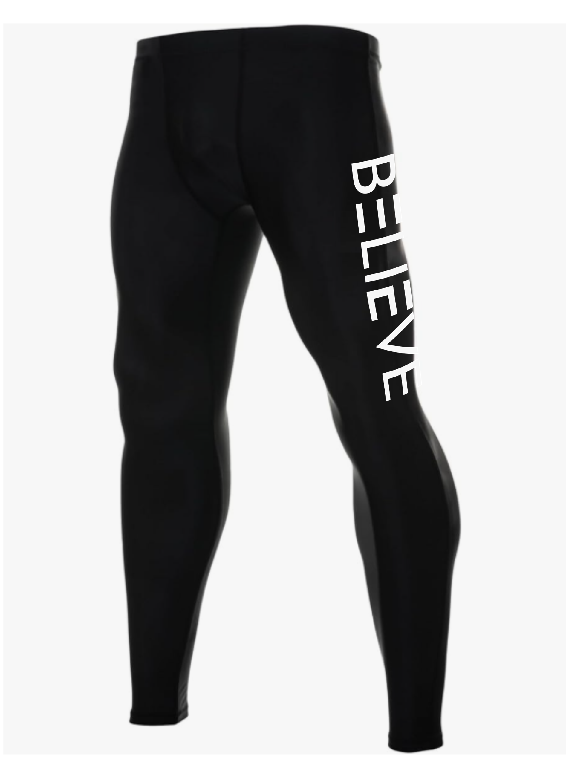 MEN BELIEVE BLACK COMPRESSION PANTS