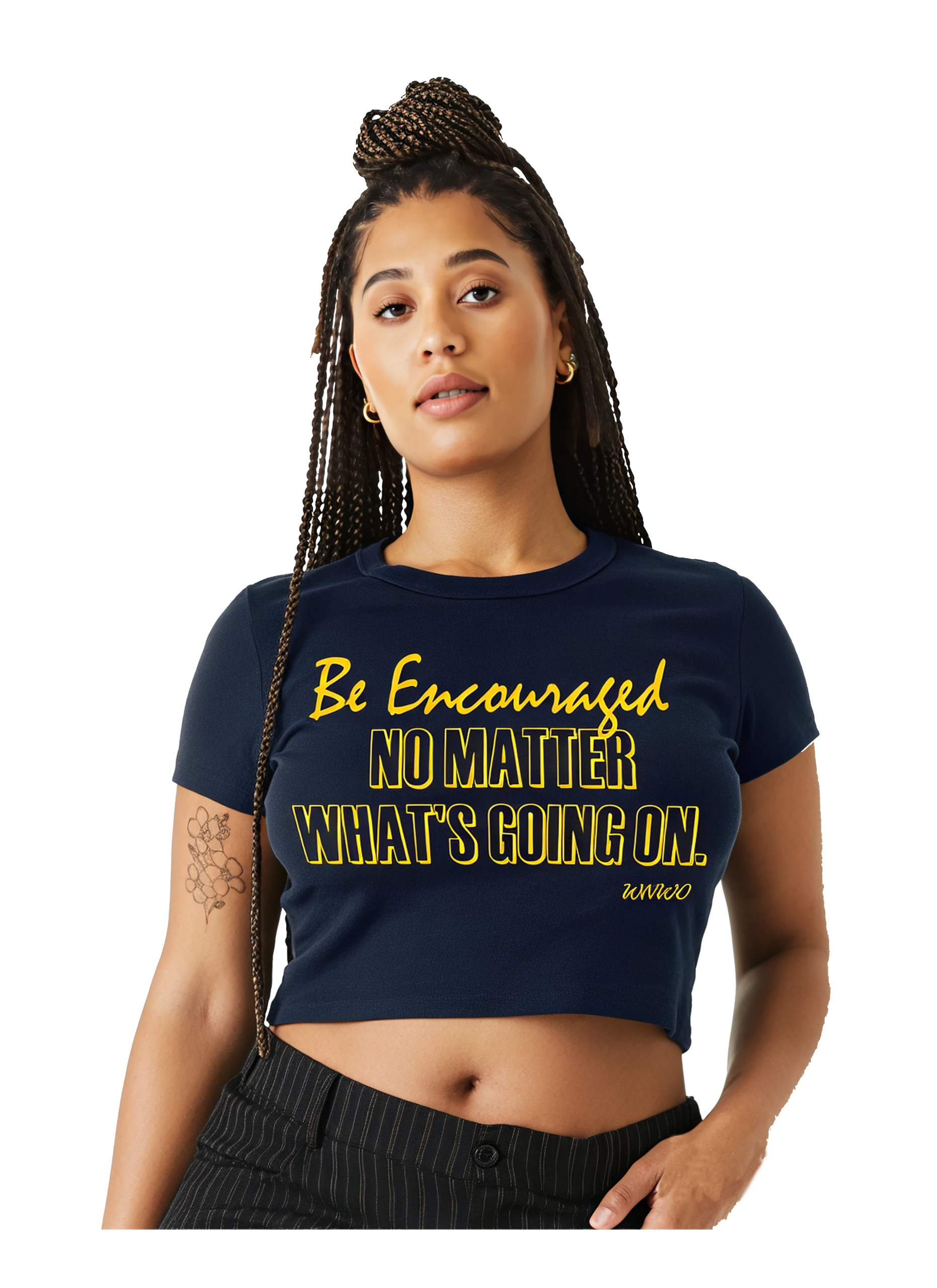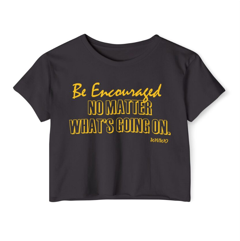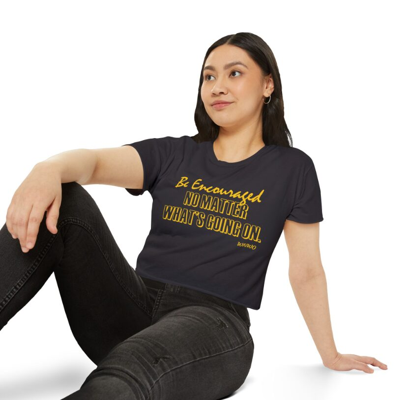 Radiating strength and positivity, the WNWO BE ENCOURAGED Ladies Crop Top Tee is a stylish tribute to unwavering faith and confidence. With its flattering cut and empowering message, it’s designed to uplift spirits and inspire action. Whether paired with jeans or leggings, this tee is a fearless fashion choice for bold, beautiful women who believe in their own light.